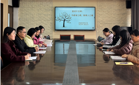 阅以增慧,研以致远。2025年12月23日,迎春中学道德与法治教研组全体教师共聚三楼会议室参加本学期的读书沙龙活动。教师们共读任苏民先生的《重读叶圣陶》一书,并结合自己的教学实践展开深入交流。教科室主任韩璐璐出席活动并作总结发言。